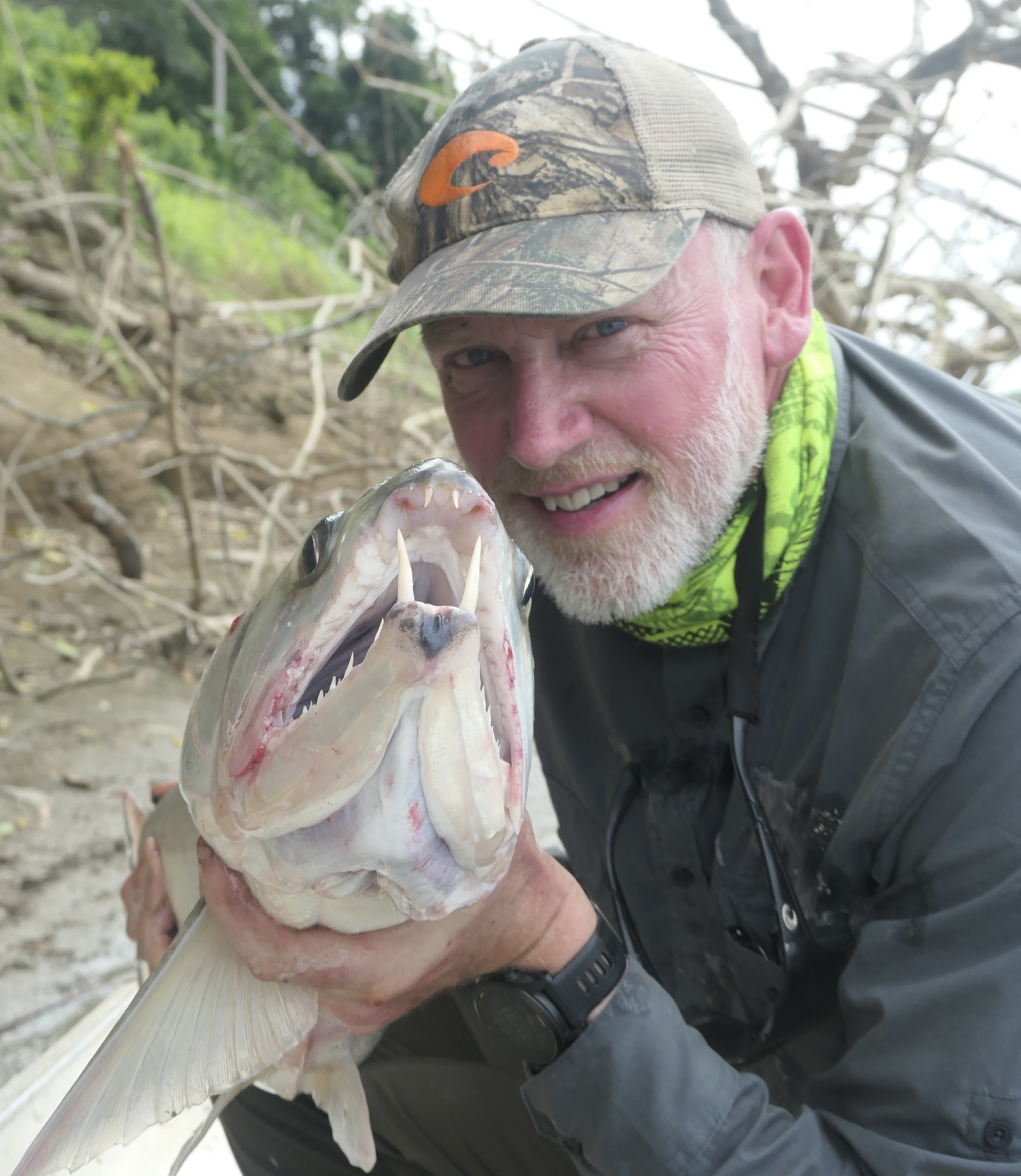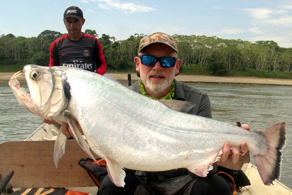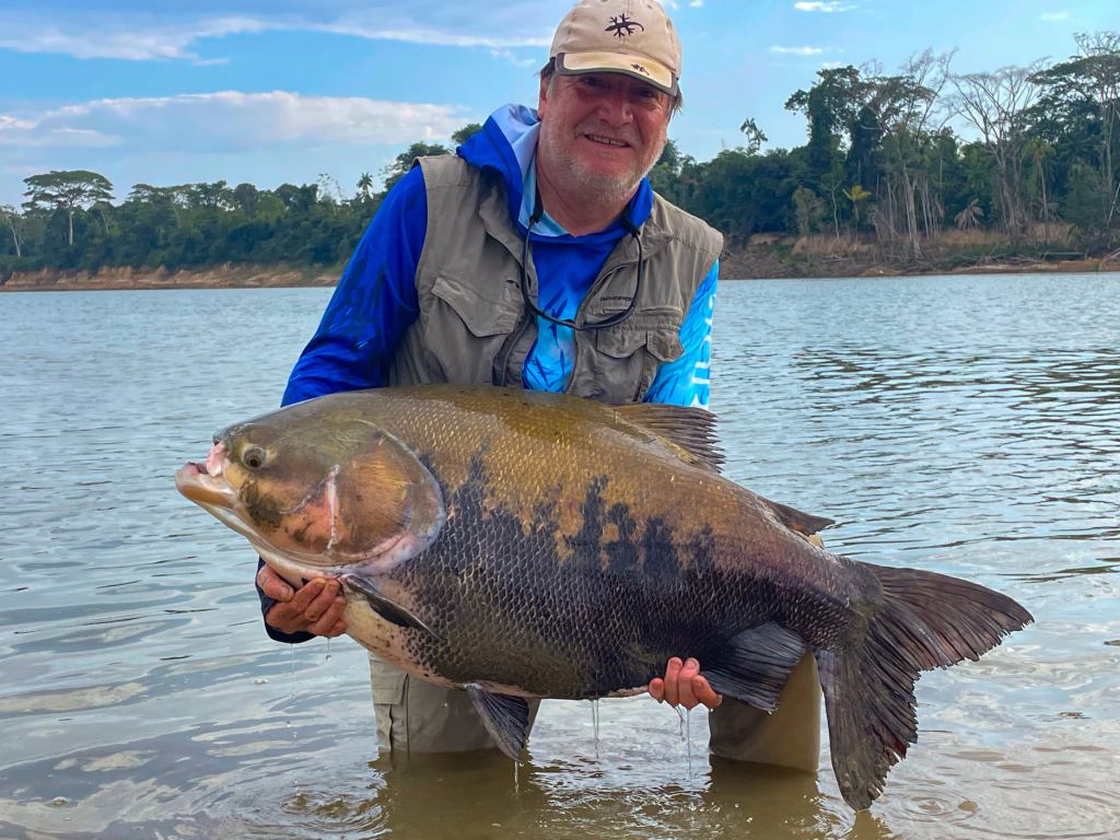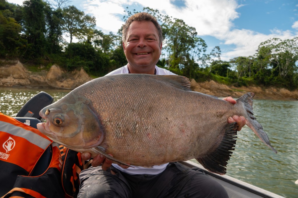 Our initial efforts were thwarted by more Pacu and a variety of small catfish, but then we heard a cry from Dai and Dave was into a big fish. The shout went up for a large Tambaqui that Dave had landed, a fish estimated around 60lbs.