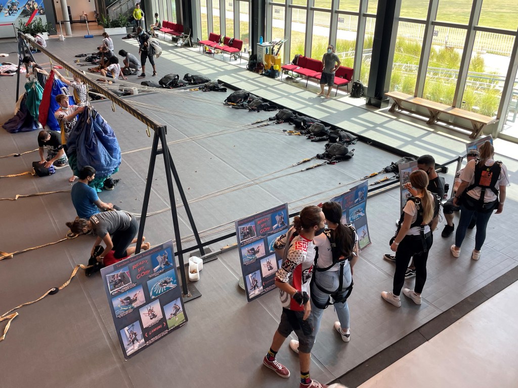 After the checking in process was complete, we were advised to go to the 1st floor area and wait for our names to be called. Upstairs was a well stocked café and and outside seating/viewing area. From the viewing area we could see a procession of jumpers landing right in front of us. I was further encouraged by the all the soft landings I was witnessing.