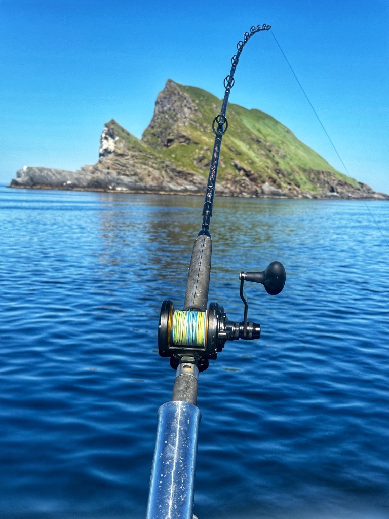 The other option (and my preferred method) is the 150g sandeel type lures. These would be cast and worked around the drifting boat. Cast the lure and let it hit the bottom. Then use fast turns of the reel to bring the lure up in the water. This style of fishing allows the lure to cover a lot of water. The hope is to get an instinctive take from the halibut, even if they are not on the feed.
